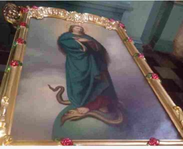 W gniewskiej farze są dwa feretrony, czy przenośne obrazy, malowane dwustronnie, zwykle umieszczone w ozdobnych ramach, tematycznie najczęściej związane z kultem maryjnym. Obrazy te są wykorzystywane podczas procesji z okazji różnych świąt. W kościele pod wezwaniem św. Mikołaja w Gniewie szczególnie jeden zasługuje na zwiększoną uwagę. Jest na nim wizerunek Matki Boskiej Królowej Różańca Świętego. Jest to szczególny obraz. Patrząc bowiem w twarz matce Chrystusa, stajemy oko w oko z królową Marysieńką, którą nieznany artysta w takiej roli uwiecznił. Podobieństwo do innych portretów królowej jest uderzające. Ten feretron zwyczajowo otwiera Paradę Księżniczek, o której będzie w dalszej części tekstu.
